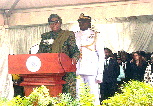 Nandi-Ndaitwah, in her role as Commander-in-Chief of the Namibian Defence Force, inspected the guard of honour to the delight of the crowd.